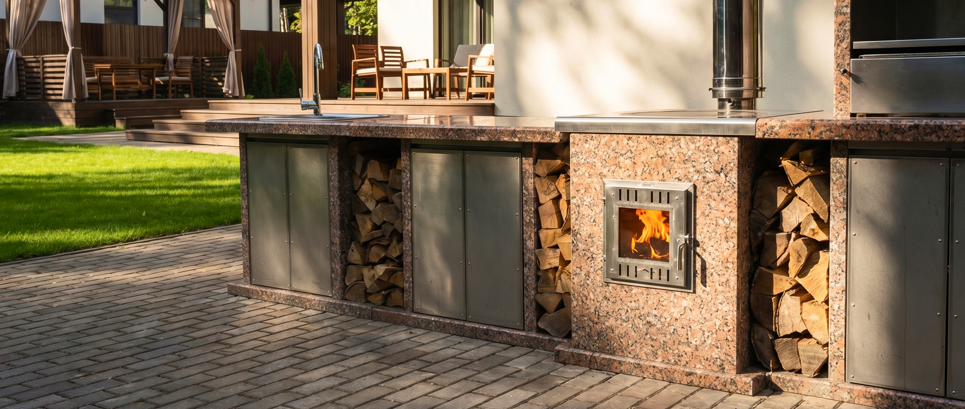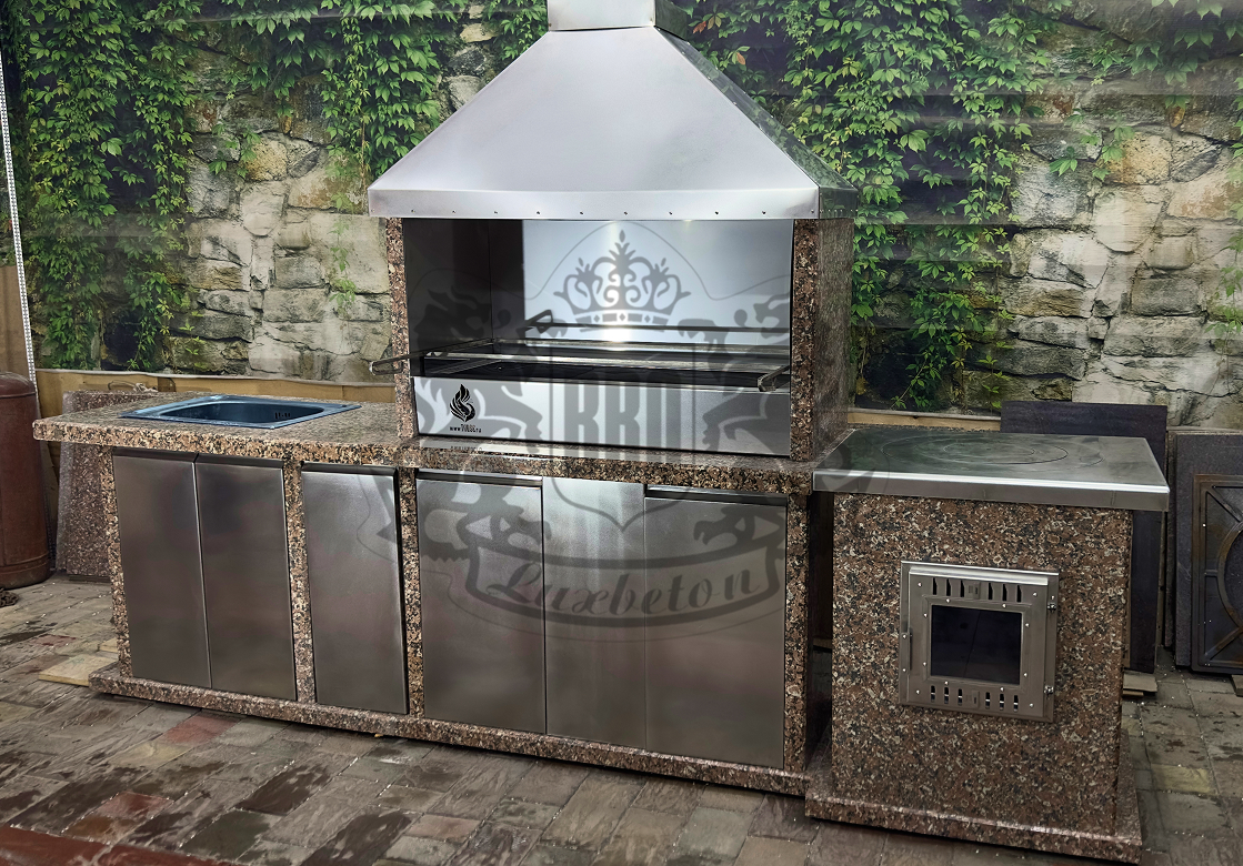 Печь под казан с плитой — это многофункциональный модуль, предназначенный для приготовления традиционных блюд в казане