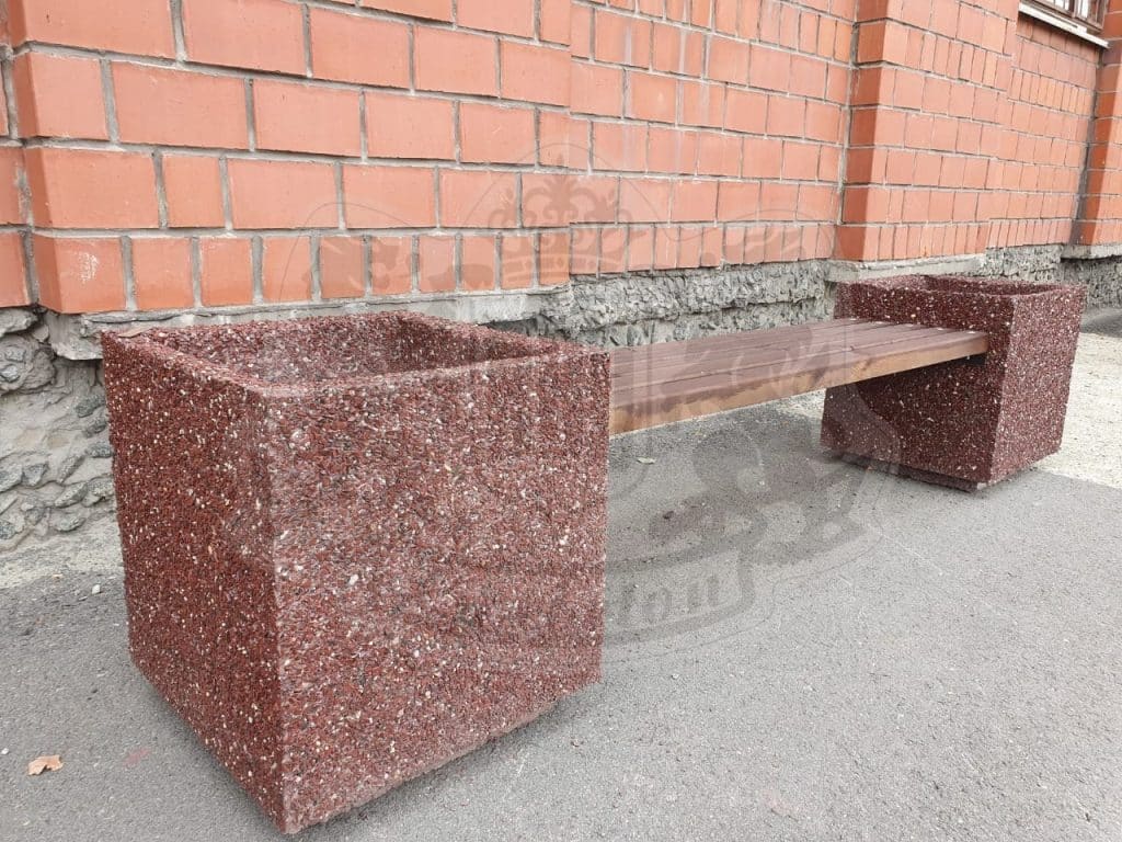 Уличная скамья из натурального камня и сосны ДхШхВ: 2500х500х450мм Вес 275кг Изделия Разнообразие цвета и фактур В составе полудрагоценные камни из Уральских гор (Яшма Златолит Змеевик Кремний Мрамор Габбро-диабаз Фельзит) Качественные изделия. Бетон прочности М600 и морозостойкости F300-350 Возможности Изготовление нестандартных дизайнерских решений Собственное производство под любой запрос Ежегодно благоустраивается более 100 000 в.м скверов и парков Более 3000 довольных клиентов по благоустройству собственных участков Подход Личный менеджер – сопровождение на всех этапах сотрудничества от разработки сметы до выполнения на объекте и даже после Гибкие индивидуальные условия сотрудничества включающие Ваш интерес Стоимость и порядок оплаты зависят от объема работ. Скидки до 30% 10 лет безупречной работы профессионалов